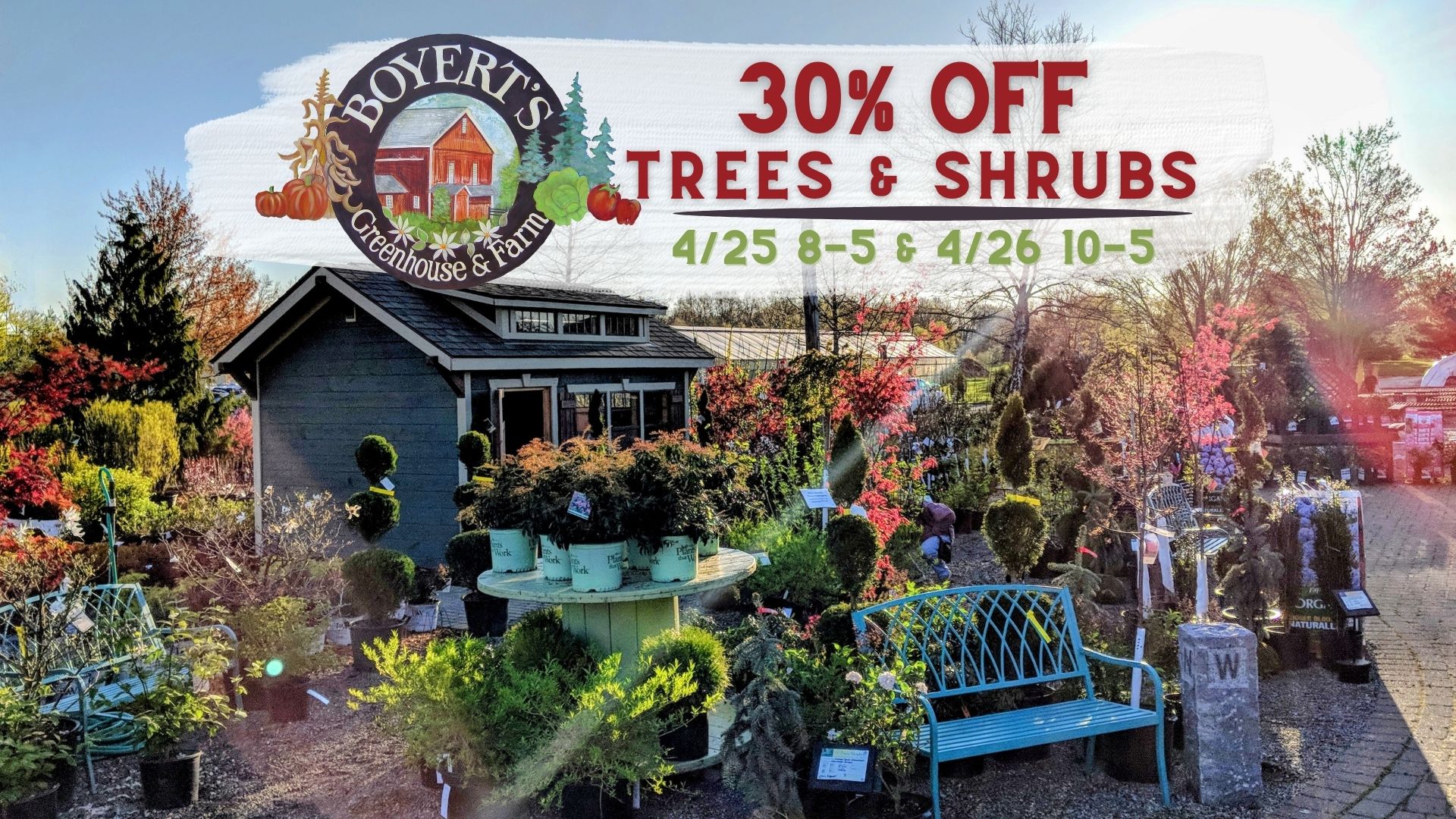 Learn More: 30% off Tree & Shrub SaleApril 26 @ 10:00 am – 5:00 pm