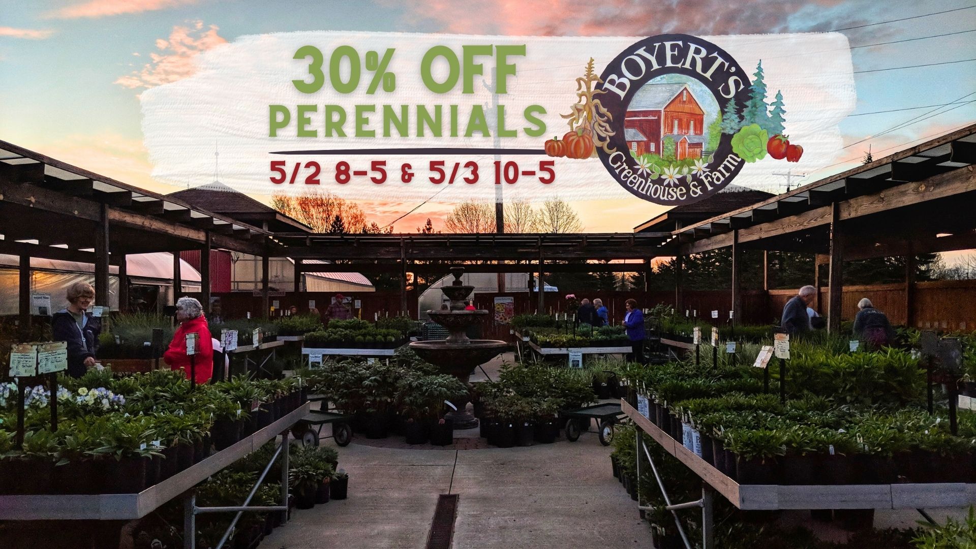 Our annual Perennial Sale is back! 30% off ALL regularly priced perennials Saturday, 5/2, from 8am-5pm and Sunday, 5/3, from…